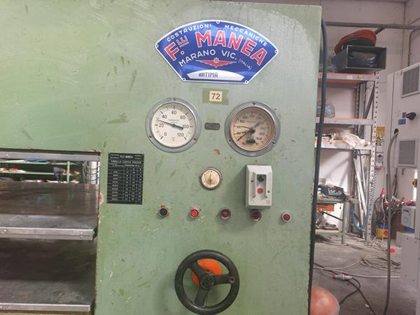 Dimenzije radnih ploča 2500x1300 mm,medju ploča,grejanje vodeno.Mašina spremna za rad.